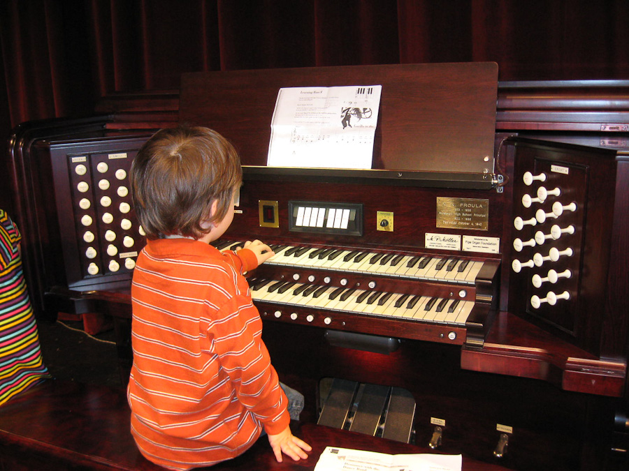 After a brief intermission, organist David Locke of the Pipe Organ Foundation played Fantasy of Fanfares by Roosevelt High School sophomore Brendan McMullen. Brendan has only recently began to study organ, but based upon his drive to compose music, he had already written this piece which is based upon a simple melody in the Dorian mode. Brendan was our youngest Foundation volunteer, and he contributed 90 hours to the rebuilding of the Roosevelt organ.