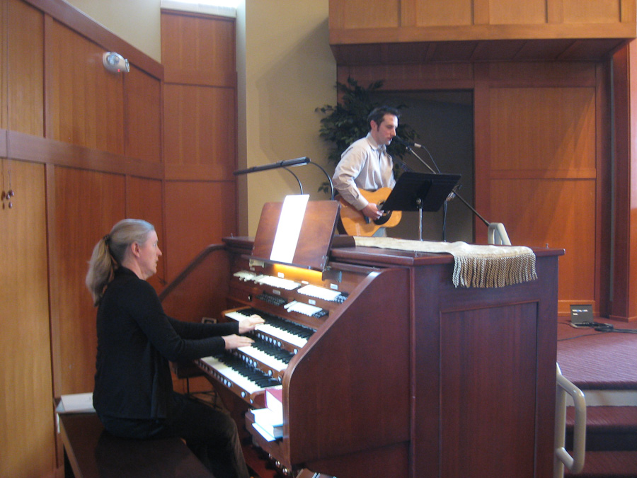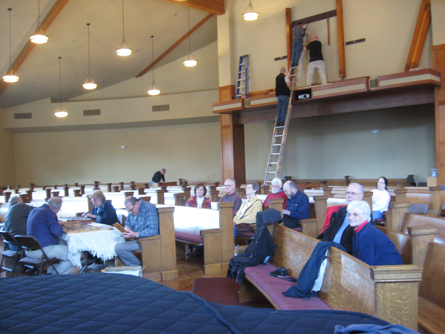 Mini-concerts were provided through the day by Bev R. and Jim W. who are the organists for the church. The pieces that they played were from a variety of composers and these pieces demonstrated the capabilities of the Great, Swell, and Pedal divisions of the instrument which are already playing at the front (see Projects for a fuller description of these divisions). Further, Pastor Luke played first the trumpet and then the guitar to show how the organ could accompany the variety of instruments used in worship. The playing was truly gratifying to the volunteers who could see clearly how the instrument they had worked on so hard was truly of benefit to the people of the church.