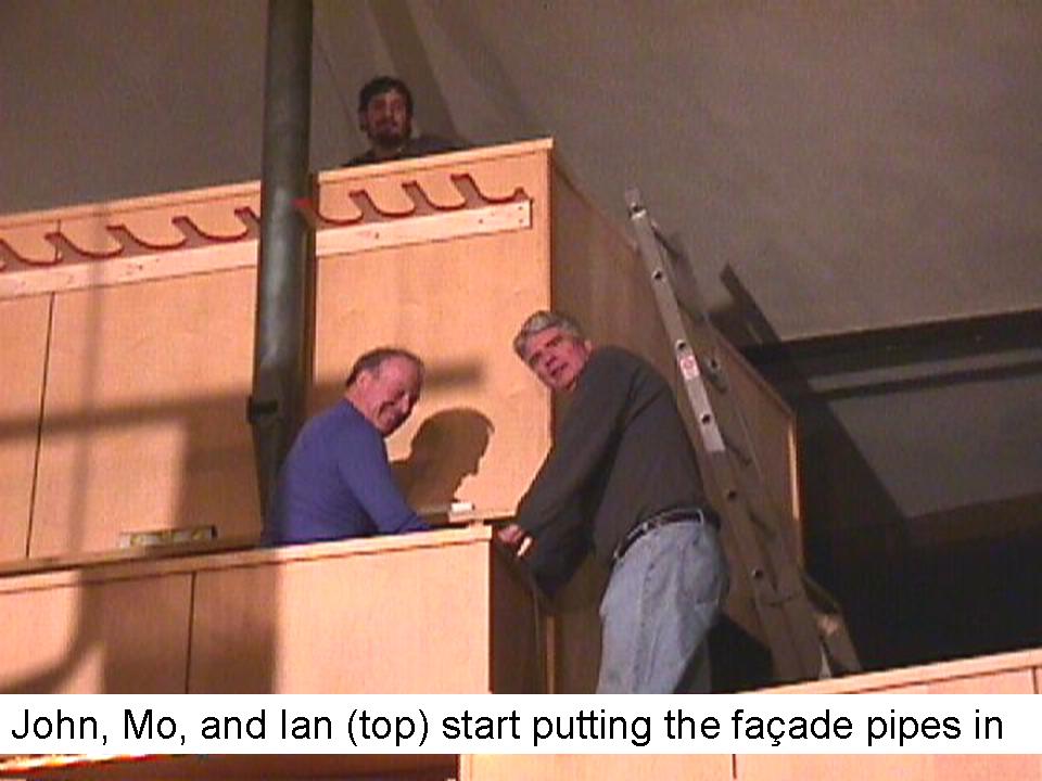 Photos in the left sidebar show various volunteers who are making this pipe organ a reality by performing the wide variety of tasks needed to rebuild an instrument. You can click on the photos to see larger images. The volunteers working on this instrument routinely reported a great deal of enjoyment in working on it, significant learning about pipe organs and how to do the various tasks, and a great deal of satisfaction with their work and especially when they heard the instrument play.